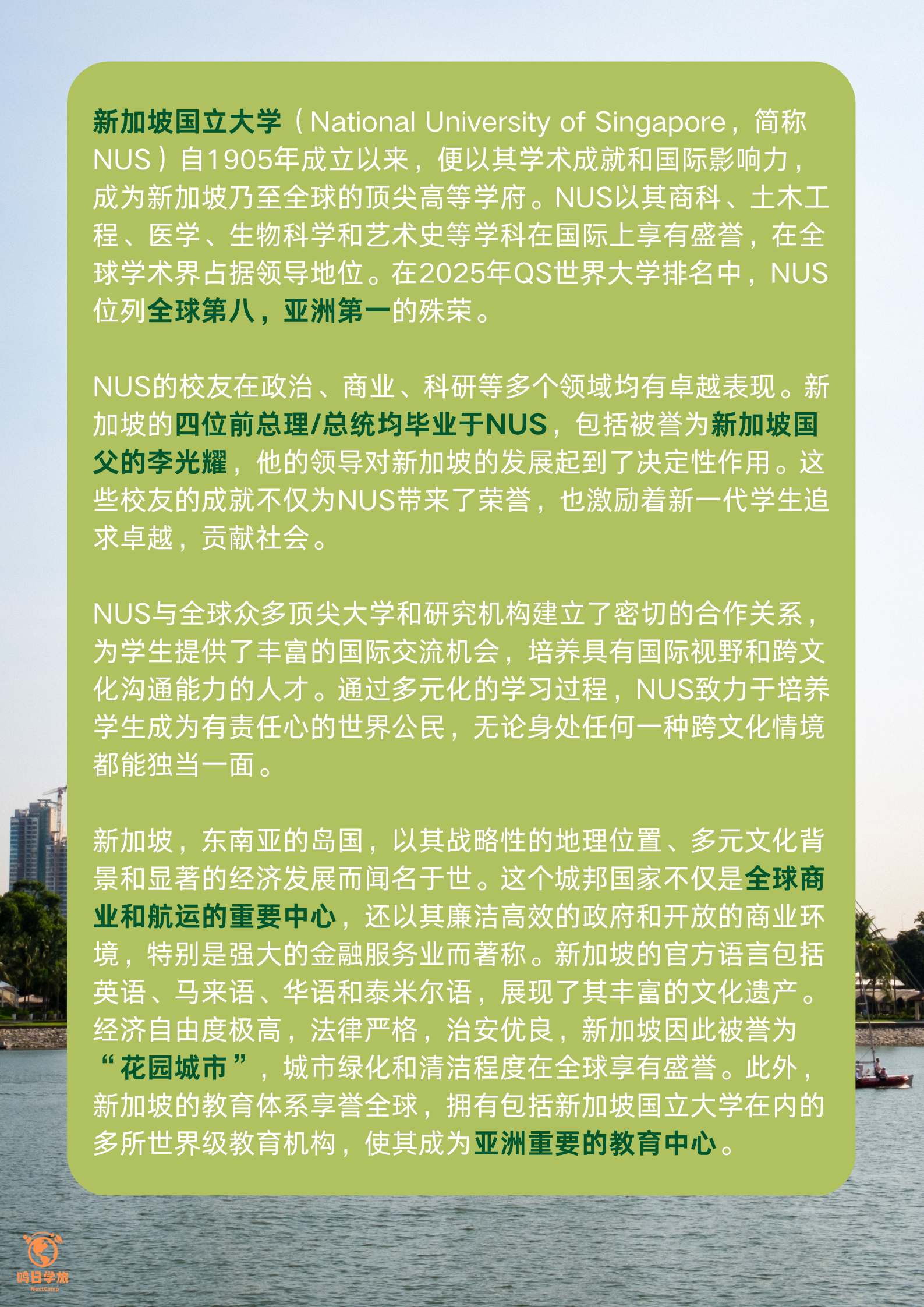 为响应新加坡政府的“未来技能计划”,新加坡国立大学(以下简称“新国大”)于2016年创建第17所学院——持续与终身教育学院(SCALE)。 通过开展高质量、行业相关的成人教育和培训项目来满足国家对人力资源的需求。基于新国大以结果为导向的研究和专业知识,以创新、多学科的视角,从新加坡亚太地区出发,解决经济和商业问题,为来自世界各地的青年、专业人士等提供在数字经济的大环境下所需的最新知识和技能培训。