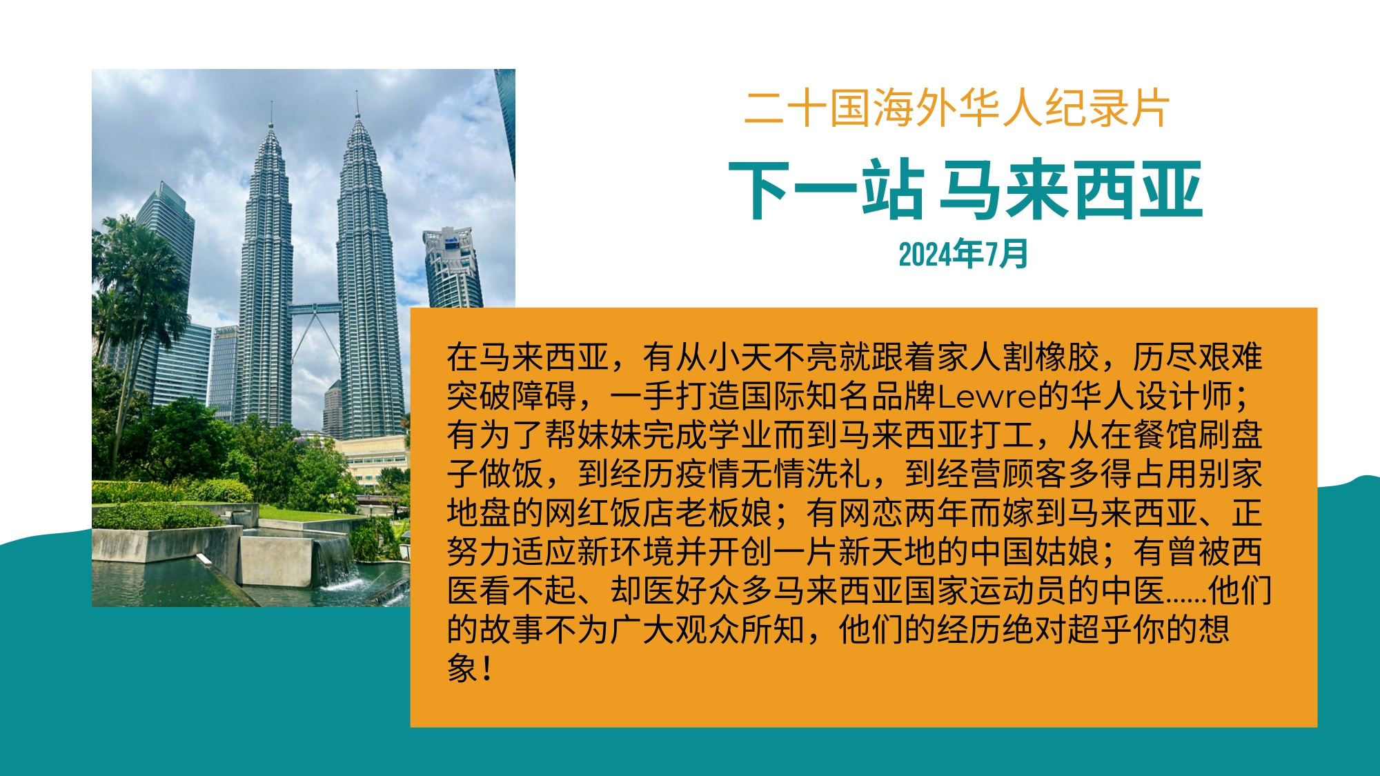 本次行程由纪录片团队,步步走世界独家推出,由哥伦比亚大学新闻学毕业的步步导师带领,以及专业的领队和保障人员 在⻢来西亚,有从⼩天不亮就跟着家⼈割橡胶,历尽艰难突破障碍,⼀⼿打造国际知名品牌Lewre的华⼈设计师; 有为了帮妹妹完成学业⽽到⻢来西亚打⼯,从在餐馆刷盘⼦做饭,到经历疫情⽆情洗礼,到经营顾客多得占⽤别家地盘的⽹红饭店⽼板娘; 有⽹恋两年⽽嫁到⻢来西亚、正努⼒适应新环境并开创⼀⽚新天地的中国姑娘; 有曾被西医看不起、却医好众多⻢来西亚国家运动员的中医……他们的故事不为⼴⼤观众所知,他们的经历绝对超乎你的想象!